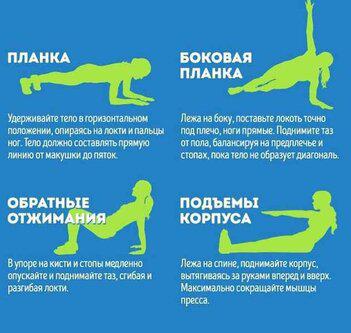 Кроме правильного питания, которое играет в красивом и подтянутом животе основную роль, предлагаем комплекс не сложных, но эффективных упражнений. Всего четыре упражнения способны за месяц осчастливить вас, заставив стать обладательницей идеального живота! Главное — четко следовать программе тренировки.