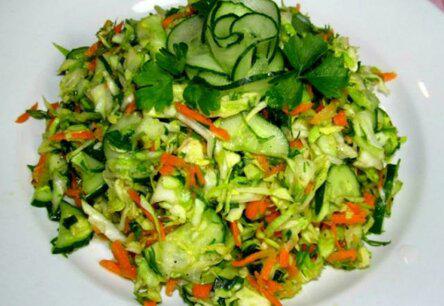 Салат из молодой капусты с огурцами и горчичной заправкой
