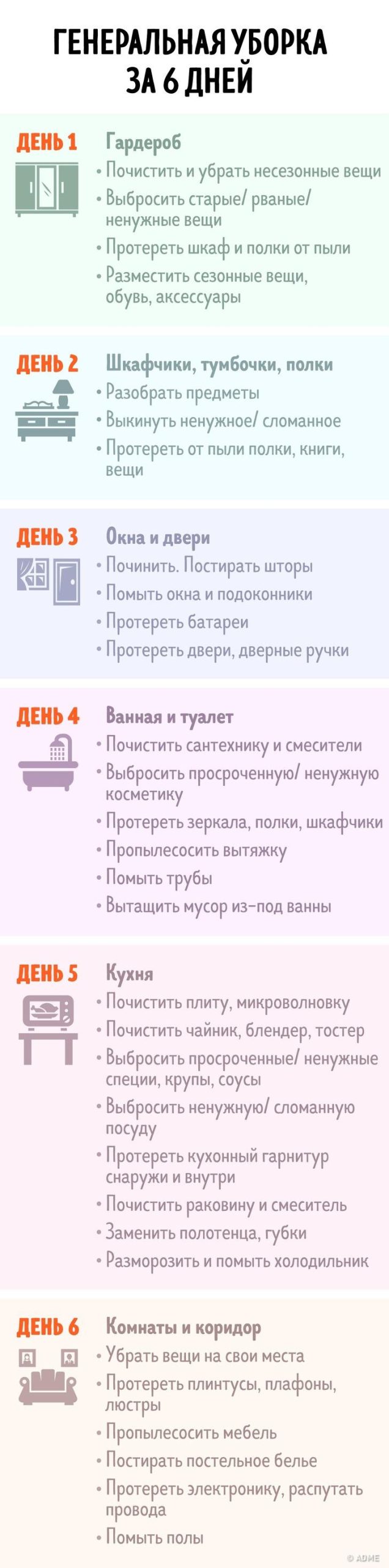 Мы не всегда остаемся довольны результатом уборки, а иногда и вовсе не успеваем вовремя избавиться от хлама. Чтобы уборка была продуктивной не только весной, но и в течение всего года, мы собрали полезные рекомендации и графики по ведению хозяйства, которые помогут сохранить вашу энергию для других важных дел.