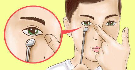 - Перед отходом ко сну смойте с лица косметику, нанесите увлажняющий крем. Возьмите чайные ложки и продезинфицируйте их с помощью спирта.