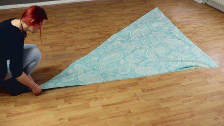 1. Сложи квадрат из ткани по диагонали. Получится большой треугольник.