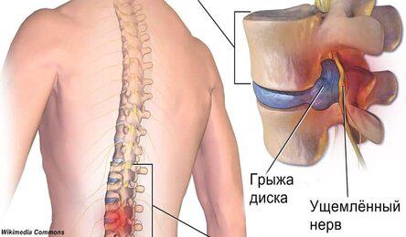 Через его трещины жидкость из ядра вытекает и защемляет нервные окончанияспинного мозга. Диск, как воздушный шарик при сжатии, выпячивается в разные стороны. Так возникает грыжа межпозвоночного диска.