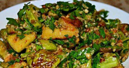 Измельчить орехи скалкой, нарубить мелко петрушку, чеснок пропустить через чеснокодавку.