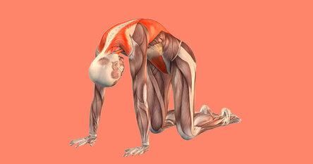 Основная поза: наклоните голову. В то же время выгните спину, поднимая ее как можно выше, чтобы выглядеть разозленной кошкой. Задержитесь в этом положении на восемь—десять счетов. Выдохните и расслабьте спину. Повторите упражнение три раза.