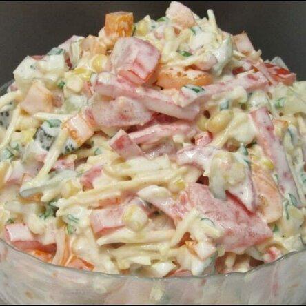Девчата, этот салат меня всегда выручает! Когда времени на готовку совсем нет, а нужно приготовить что-то вкусное сытное, да еще и красивое – тогда мне на помощь приходит этот салатик!