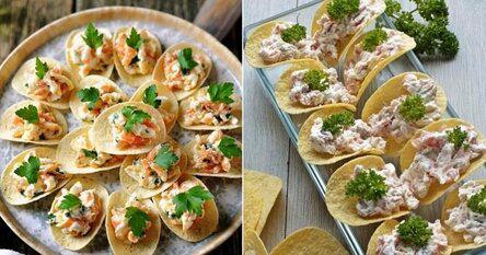 Закуска на чипсах с красной рыбой