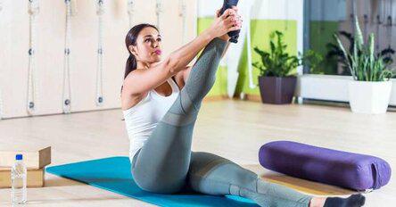 - Сядь на ягодицы, выпрями ноги, вытяни их вперед.