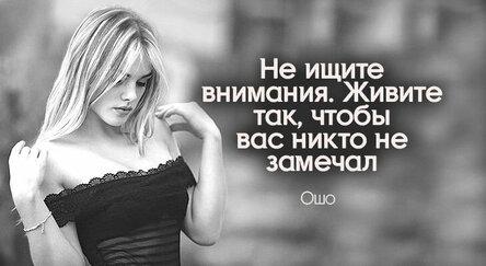 Эго живет вниманием. Это ложное явление. Поймите его и выйдите из него. И стоит лишь вам из него выйти, как внутри вас пробьется новое качество ясности, тишина, превосходящая всякое понимание, молчание — естественное спонтанное молчание и блаженство начнут проявляться в вас, внутренний танец. И нет другого танца, и нет другого экстаза.