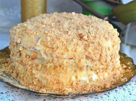 И таким образом собираем тортик слоями: крошка -> крем. Последним слоем должен быть пломбирный крем, а сверху можно посыпать тертым шоколадом (у меня белый).
