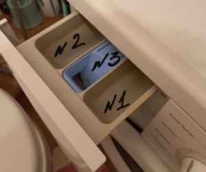 Если присмотреться, то можно заметить, что отсеки подписаны. Крайние помечены цифрами, а средняя с рисунком снежинки. Но в разных марках стиральных машин этот порядок может отличаться.