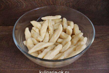 На стол насыпьте муку. Тесто отрывайте по кусочку и на подсыпанной мукой поверхности скатывайте жгутики, сформируйте пальчики.