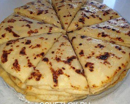 Полученное тесто поделите на пять кусков и каждый раскатайте в лепешку. В сковородку налейте немного масла, нагрейте и обжарьте лепешки по очереди до румяности с одной и другой стороны. Жарьте по несколько минут на огне средней интенсивности.