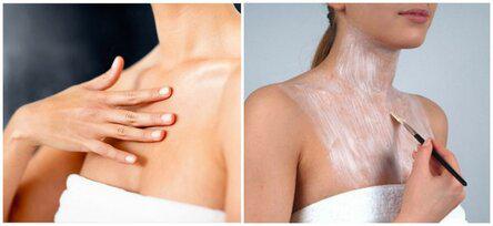 От складок на шее поможет теплое картофельное пюре, в которое добавляется 1 ч.л. глицерина и 1ч.л. оливкового масла. Пюре выкладывается на ткань, прикладывается к шее, сверху пленка и шарф. Держать компресс 15-20 мин, затем смыть теплой водой. Складки исчезнут после нескольких таких компрессов.