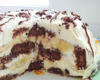 По моему мнению, это самый простой рецепт вкусного торта. Не нужно ничего выпекать, разводить, взбивать или заваривать. Когда не успеваю с выпечкой, готовлю такой десерт для гостей. Мало кто может сразу определить, из чего он приготовлен. Когда торт хорошо пропитается, он похож по вкусу на бисквитный торт с бананом. Нежный и сочный бисквит, с ароматными кусочками бананов — это просто чудо.