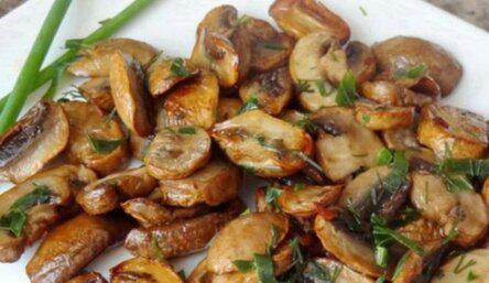 Затем обсушиваем грибы бумажными полотенцами и обжариваем шампиньоны на сковороде с растительным маслом. Приятного аппетита!
