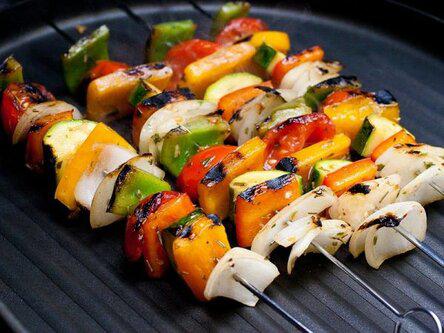 Ты можешь нанизать овощи на шампуры либо положить их в сетку и запечь, как барбекю. Запекай их по 10 минут с каждой стороны.