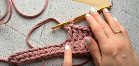 Вязание завернется, повторите все в обратном порядке. В последнюю петлю провяжите 2 столбика без накида (прибавка). Соедините ряд столбиком без накида.
