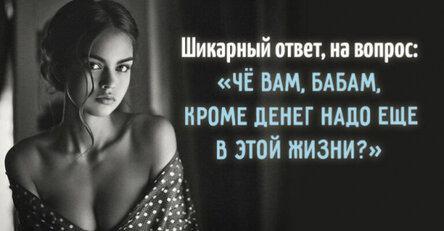 Шикарный ответ, на вопрос: «Чё вам, бабам, кроме денег надо еще в этой жизни?»