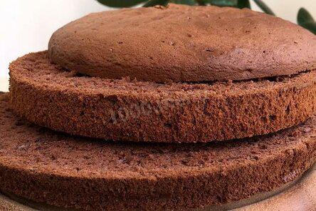 – Для экономии времени можно яйца не разделять на желтки и белки, а сразу взбивать вместе с сахаром на максимальной скорости около 7 — 10 минут. Затем постепенно добавить муку с какао, перемешать миксером на низкой скорости примерно 1 минуту, вылить тесто в форму, накрыв фольгой, и запекать до полной готовности. Получится не менее вкусно.