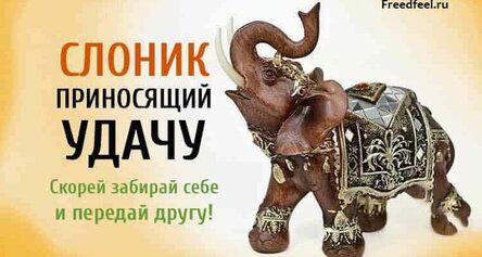 Слоник приносящий удачу. Скорей забирай себе и передай другу!