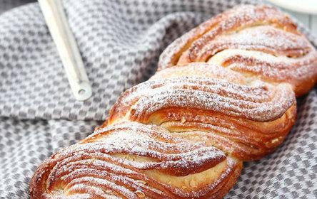 Затем оформить в форме жгутика. Смазать плетенку взбитым яйцом и отправить в разогретую до t200С духовку, выпекать до румяной корочки.
