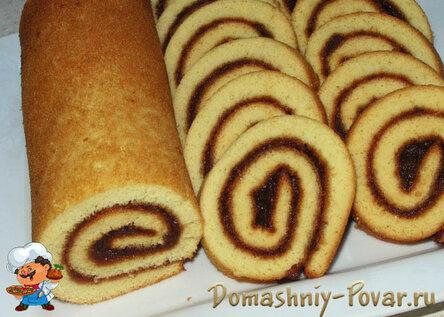 Готовый бисквит можно свернуть рулетом сразу или после остывания.
